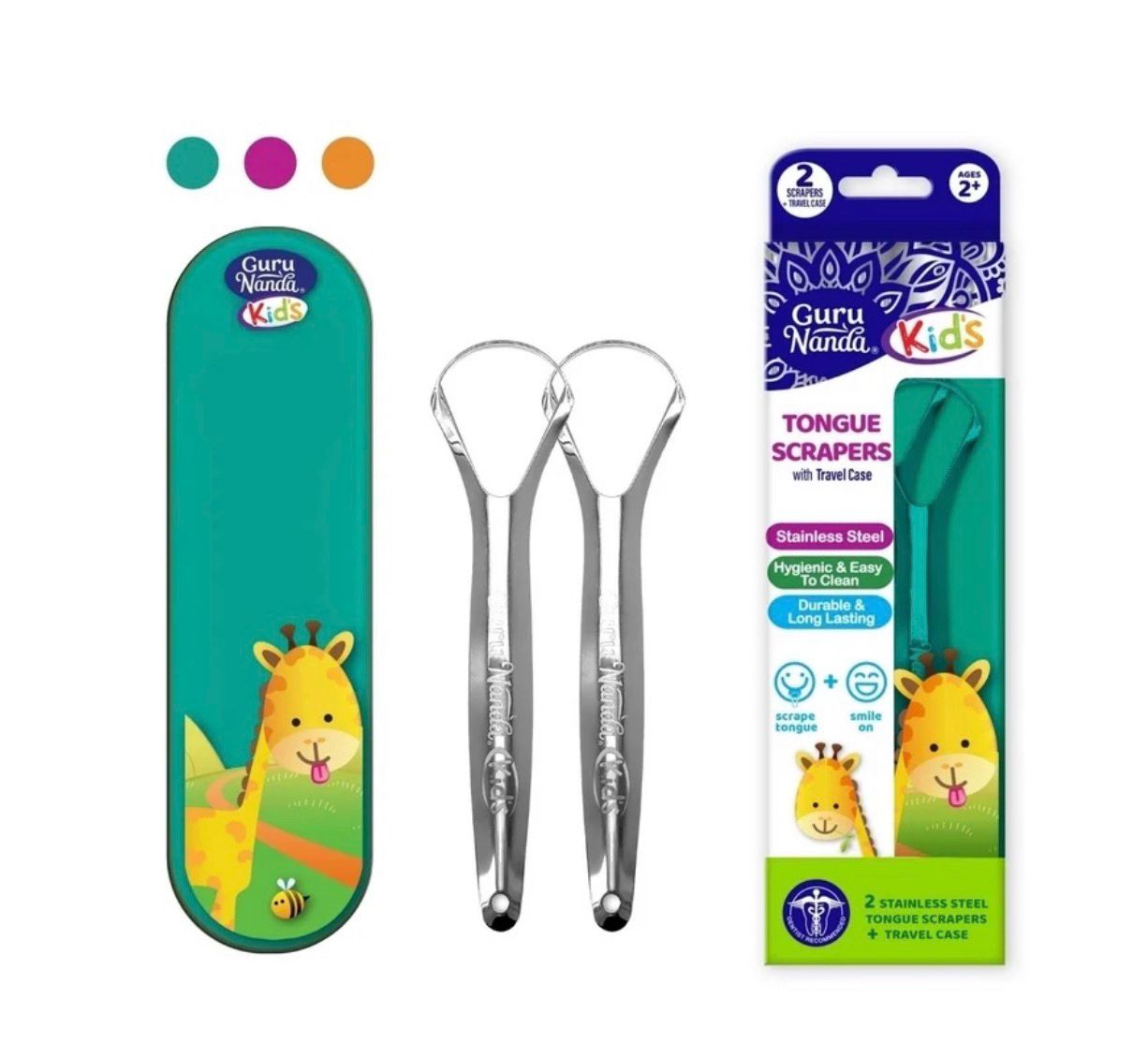 GuruNanda Kids Reusable Stainless Steel Tongue Cleaner, 2-Pack with Travel Case for Oral Hygiene – Haircessorize